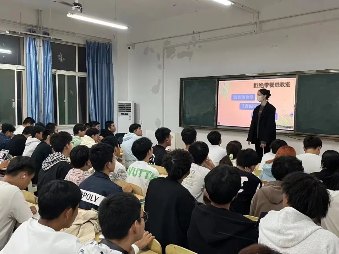 同学们,从我做起,以爱护教室环境为己任,从不携带早餐进课堂开始,还教室一缕淡雅的书香。让我们争做文明课堂的宣传者、实践者、监督者,共建智能制造学院和谐、文明、美好的校园环境。