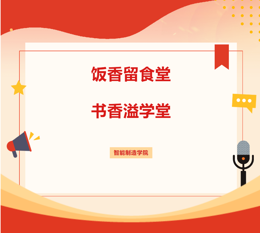 为了创建良好的文明课堂和学习环境,实现早餐回归食堂,文明回归课堂,全院开展“禁止早餐进教室和课堂”专项活动,禁止携带餐食(饮用水除外)进入教室和课堂,进一步建设文明校园、和谐校园,营造优美舒畅的学习氛围,针对目前存在的“带餐进教室”不文明现象,在此向智能制造学院全体学生发出如下倡议: