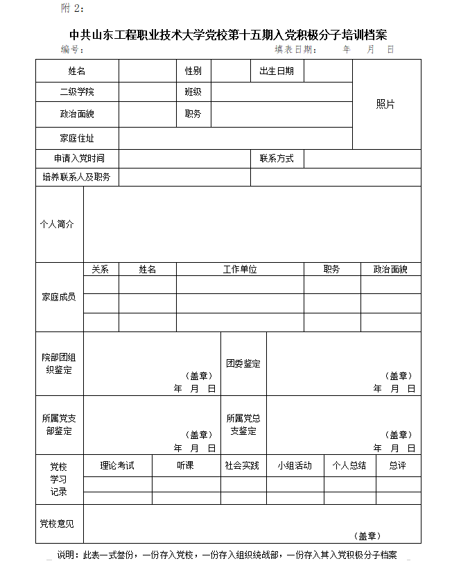 2. 中共山东工程职业技术大学党校第十五期入党积极分子培训档案