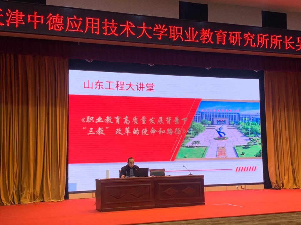 11月18日下午,天津中德应用技术大学姜大源教育名家工作室常务副主任吴全全教授应邀为我校师生作线上学术报告,报告主题为《职业教育高质量发展背景下“三教”改革的使命与路径》。副校长张诚主持报告会,各相关职能处室负责人及科室人员、部分教师共150余人在诚基楼学术报告厅收看了报告会。