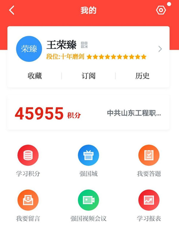 王荣臻是我校基础教学部综合科副科长、体育老师,曾荣获优秀党务工作者、优秀教职工、模范共产党员等荣誉。自从2019年下载注册“学习强国”以来,王荣臻便带头坚持学习,一天不落,截至2021年9月13日,学习积分达45955分,位列全校第一名。