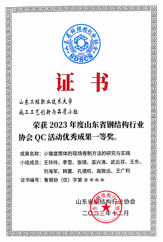 6月21日至23日,山东省钢结构行业协会在德州市举办黄河流域钢结构行业智能制造论坛暨2024年度山东省钢结构行业协会年会。我校建筑工程学院凭借其卓越的工匠精神和创新实力,荣获一项优秀工匠、两项工法荣誉及一项QC(质量控制)成果,进一步彰显了学院在教育教学和科研创新方面的显著成果,提升了学校在钢结构及相关领域的知名度和影响力。